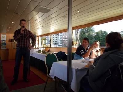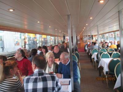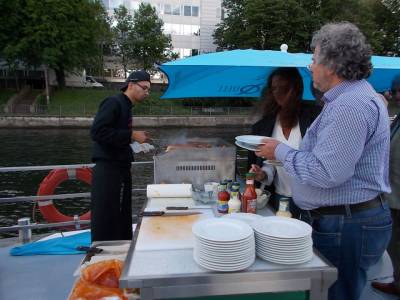 Auf der Strecke Richtung Innenstadt ging es ab der O2 World u.a. an dem Stadtschloss Rohbau vorbei, dem Reichstag, der Museumsinsel. Bei frischem Grillfleisch vom bordeigenen Grillmeister, ließen sich, wie in jedem Jahr perfekt neue Kontakte knüpfen, alte vertiefen und vielleicht der eine oder andere Geschäftsabschluss anbahnen. Die Fahrt bis in die Nacht hat den Teilnehmern gut gefallen. Im nächsten Jahr (2016) soll die Fahrt dann auf einer anderen Strecke auf der Spree entlang stattfinden.